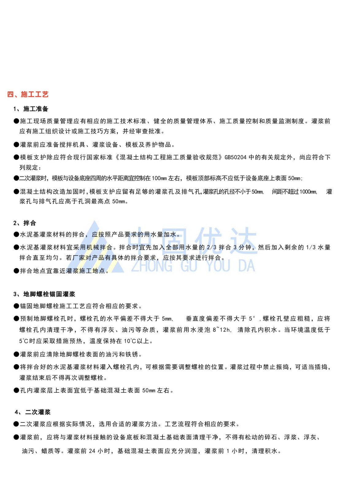 2、灌浆料成分规格不同,水料要严格按着使用说明配比;